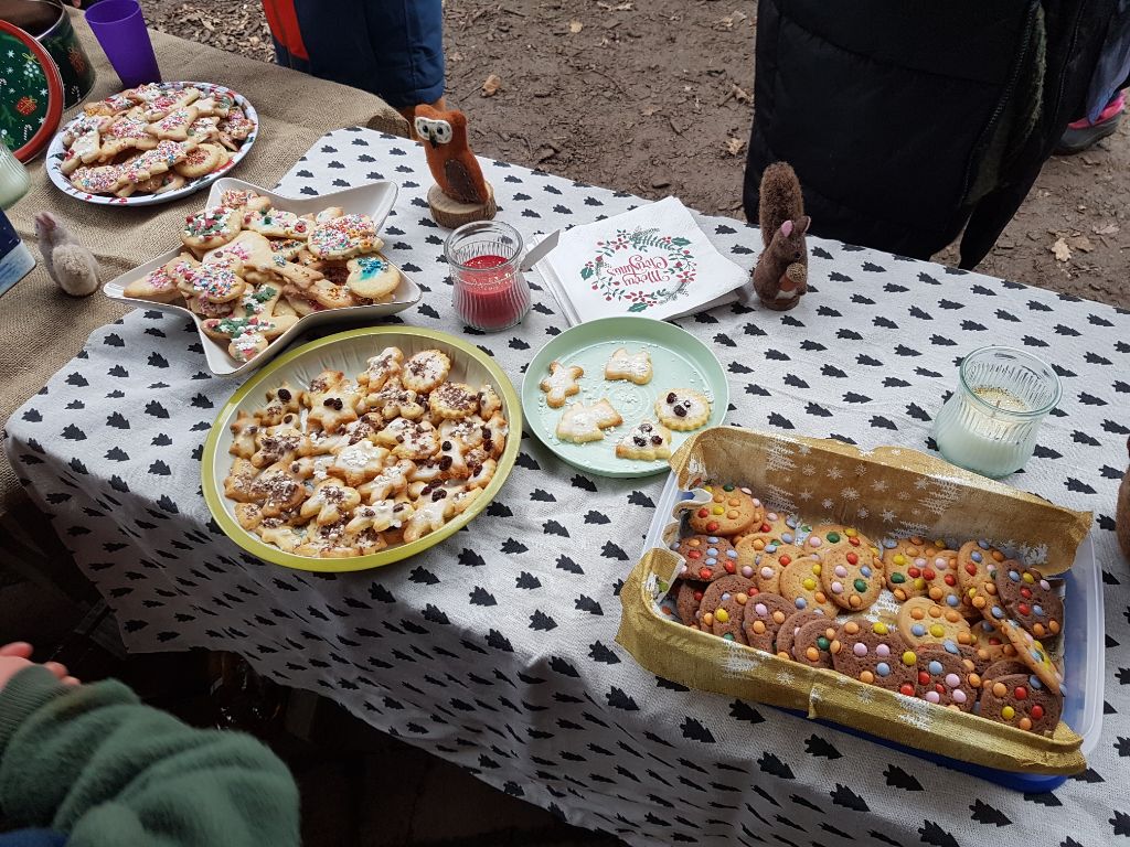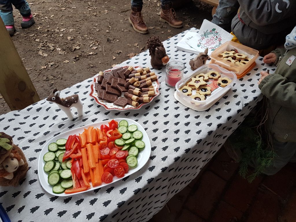 Gemeinsames Singen von Weihnachtsliedern, eine kleine Wichtelsuche mit Naturmaterialien und köstliche Leckereien wie Kuchen, Plätzchen nd heiße Würstchen haben diesen letzten Kindergartentag des Jahres zu etwas Besonderem gemacht.